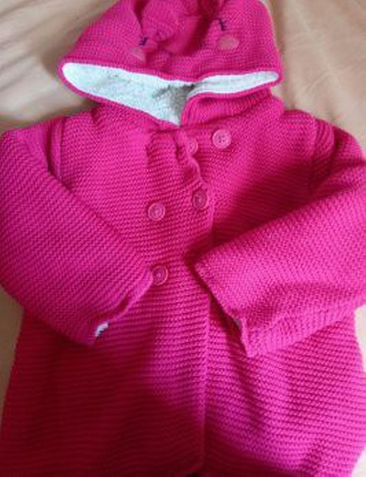 Örgü kumaştan, uzun kollu, kapüşonlu ve fitted kesim pembe kız çocuk hırkası. Desensiz, renkli normcore tarzda. 3 4 yas