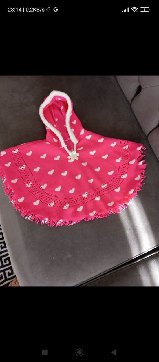 Kız Çocuk Pembe Kapüşonlu Ponço