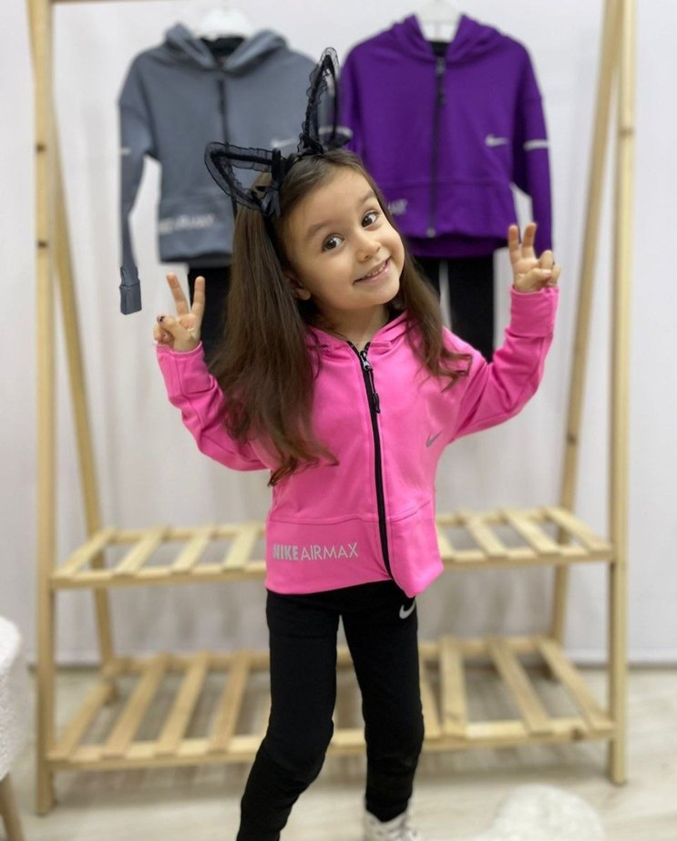 Yumuşak fleece kumaştan yapılmış, kapüşonlu ve uzun kollu, renkli baskılı pembe sweatshirt. Velcro detay ve 'MIKEAIRMAX' yazısı bulunur. Trendy günlük tarz için uygun.
