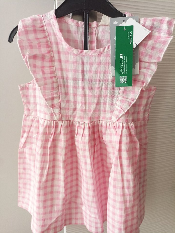 Kız Çocuk Pembe Kareli Kolsuz Elbise