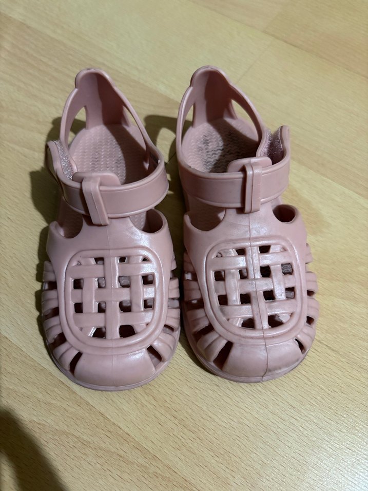 Pastel pembe kauçuk kız çocuk terlikleri, tokalı kayış ve nefes alabilen örme tasarıma sahiptir. Günlük sokak giyimi için uygundur. 23 numara Lc waikiki
