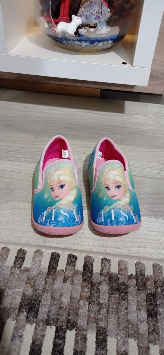 Elsa Kız çocukları için pembe, pastel baskılı, kaymaz tabanlı ve cırt cırtlı ayakkabı sadece bir kez giyildi sorunsuz yeni ürün