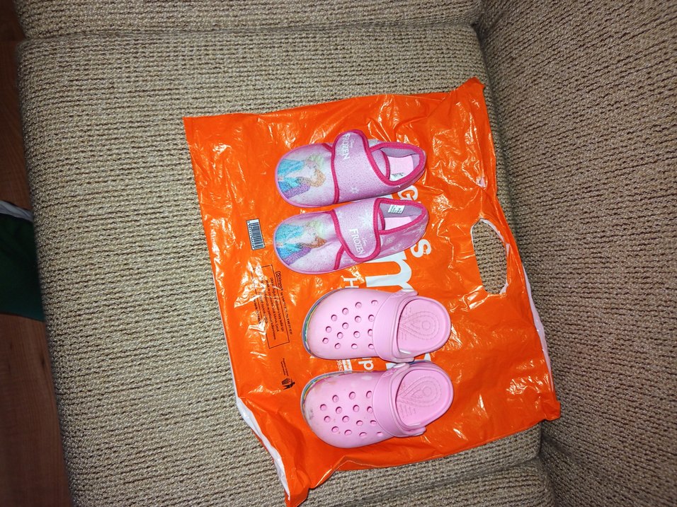 Pembe, renkli baskılı ve velcro bantlı kız çocuk terlikleri, ev pufu