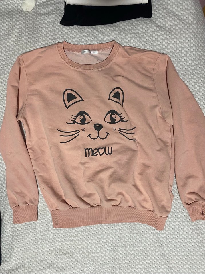 Kız çocuklar için pastel pembe sweatshirt. Uzun kollu, yuvarlak yaka, deforme yok ama kullanıldığı için makul fiyata eklendi