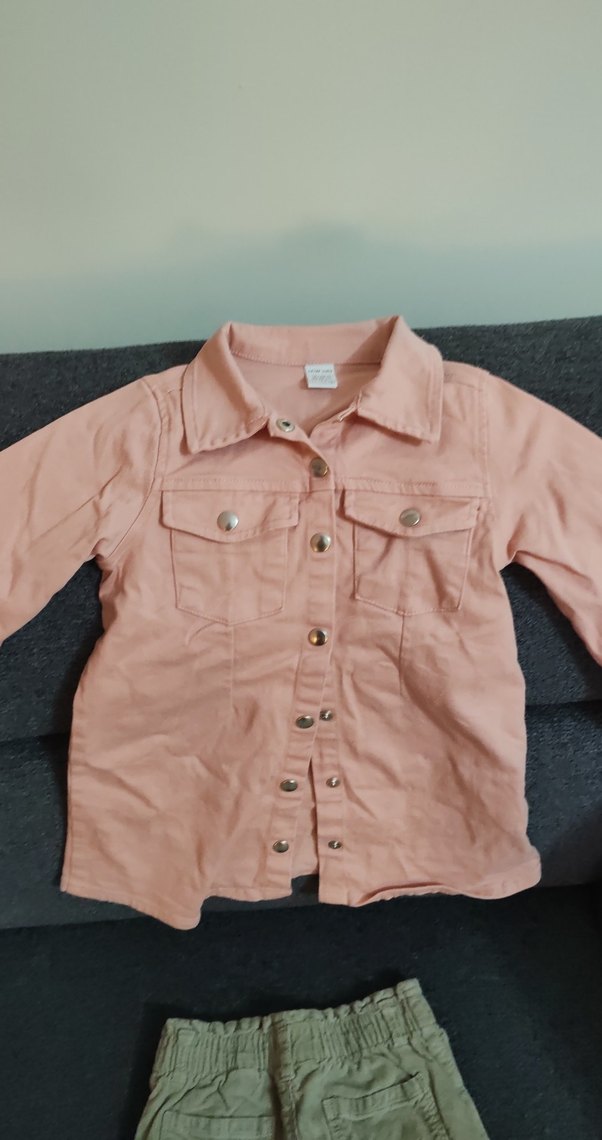 Pembe keten kumaştan yapılmış, düğmeli ve kesik yakalı kız çocuk ceketi. Rahat kesimiyle trend sokak modasına uygundur.