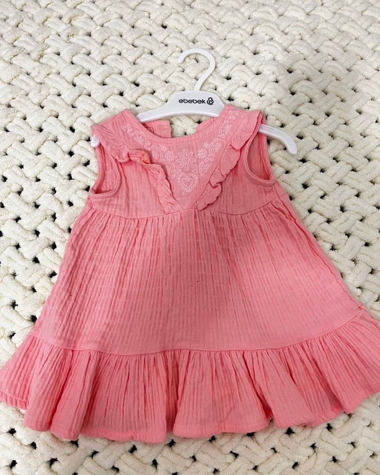 Kız Çocuk Pembe Keten Fırfırlı Elbise