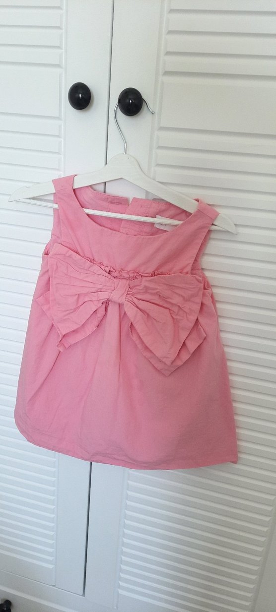 Kız Çocuk Pembe Keten Fiyonklu Elbise
