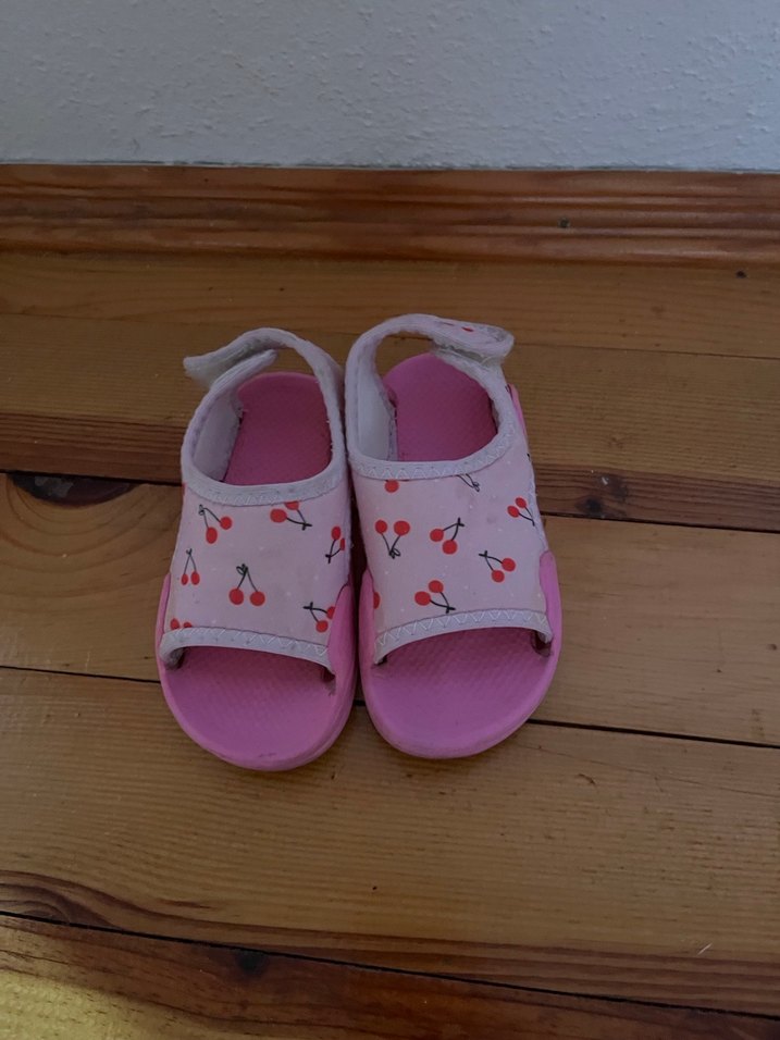 Pembe kiraz desenli, cırt cırtlı, kauçuk malzemeden yapılmış kız çocuk terliği. Rahat kullanım için uygundur.