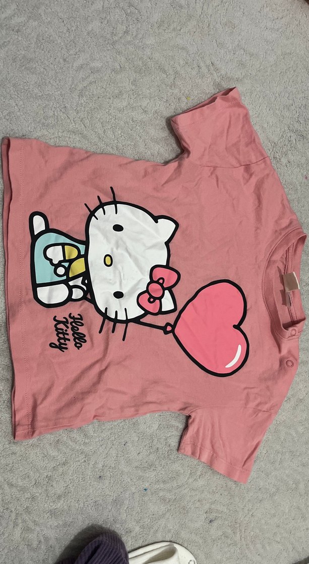 Pamuklu kumaştan yapılmış, kısa kollu ve düğmeli, fitted kesim pembe tişört. Üzerinde baskılı Hello Kitty deseni ve crew neck bulunur.
