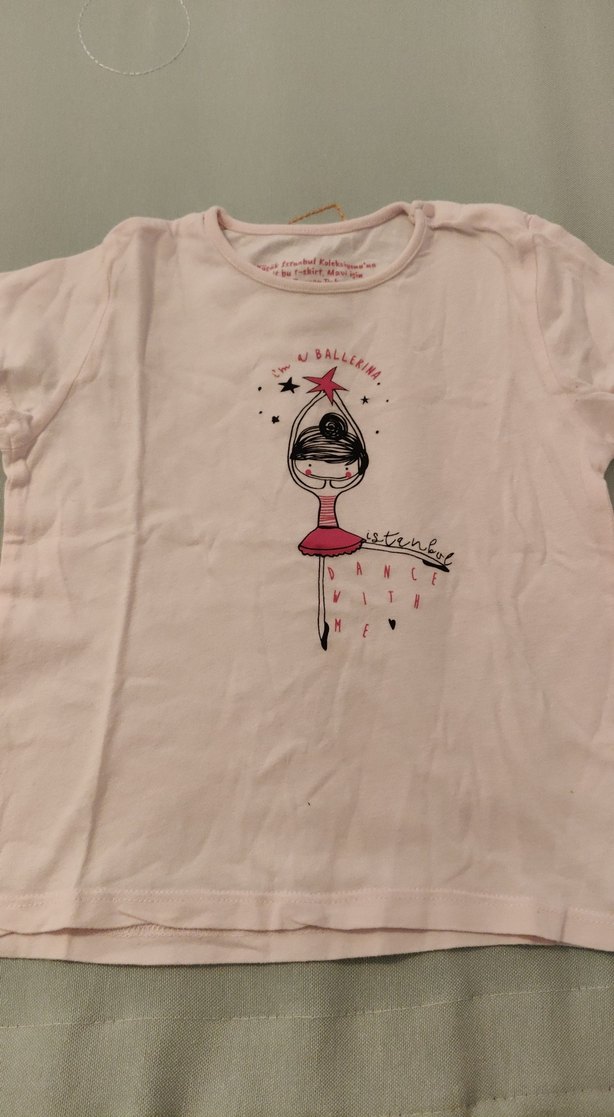Pamuklu, kısa kollu, yuvarlak yaka ve bol kesim pembe kız çocuk tişörtü. Üzerinde baskılı balerin deseni bulunur. Sokak tarzı ve rock punk havası verir.