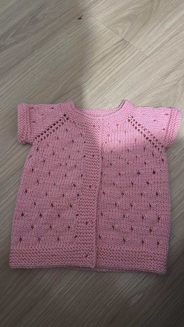 Kız çocuklar için pembe, kısa kollu ve rahat kesim örgü hırka. Yumuşak örgü kumaştan üretilmiştir ve sade tasarıma sahiptir. Düğmes dikilecektir