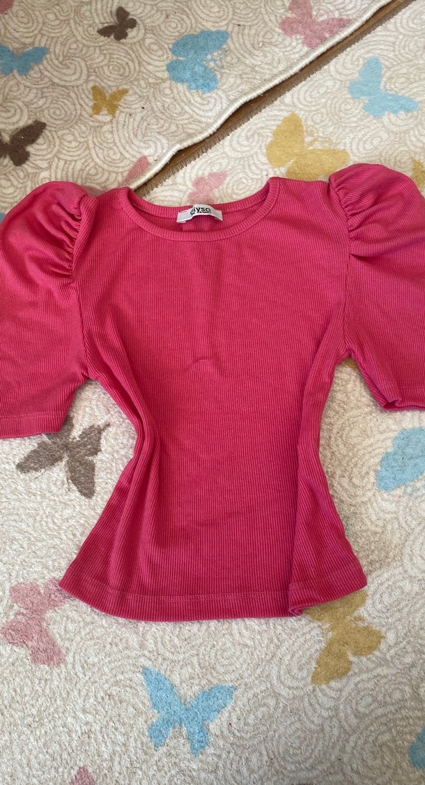 Kız Çocuk Pembe Kısa Kollu Triko Tişört