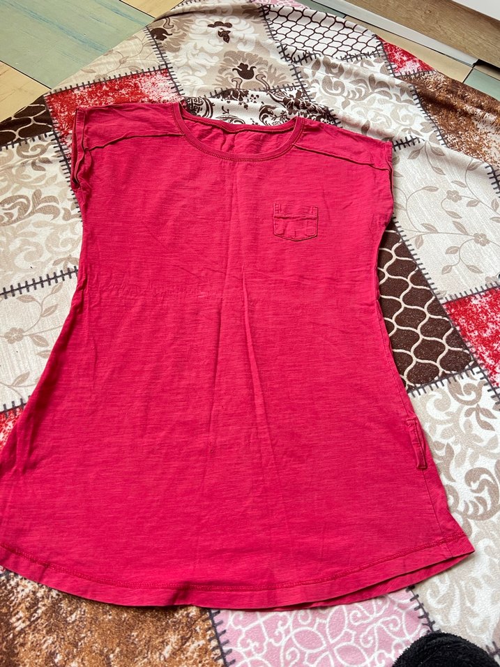 Kız çocukları için kolsuz, yuvarlak yaka ve düğme detaylı pembe tişört. Yumuşak sentetik kumaştan, bol kesim ve küçük cep özellikli.