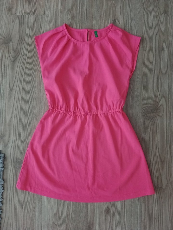 Kız çocukları için kolsuz, pembe renkte, dar kesimli, yuvarlak yakalı elbise. Canlı renkli, sade ve rahat bir tasarım.