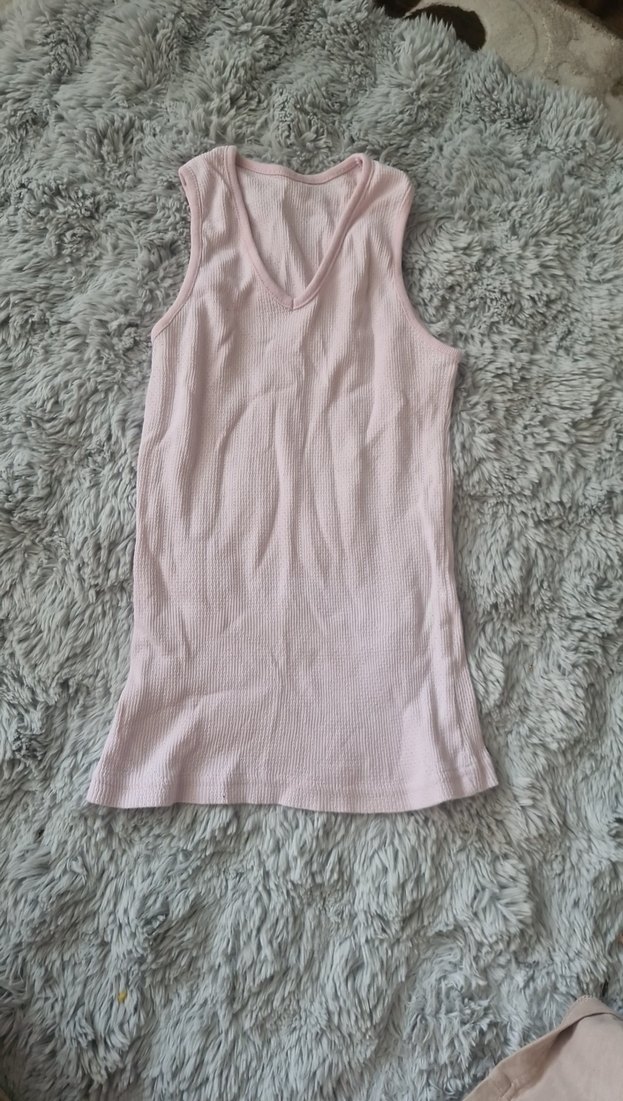 Yumuşak keten kumaştan, kolsuz ve V yakalı pembe, fitted kesim kız çocuk atleti, sade ve şık bir görünüm sunar.