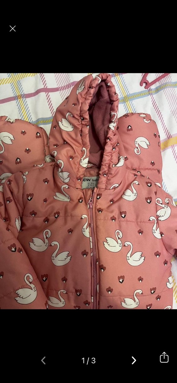 Kız Çocuk Pembe Kuğu Baskılı Fermuarlı astronot Mont