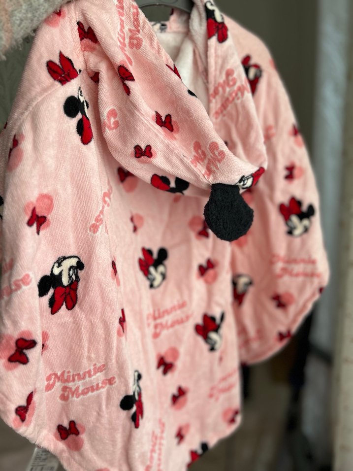 Pembe renkli kız çocuk panço havlu bol kesim, Yumuşak ve sıcak kumaştan, Minnie Mouse baskılıdır. LCW 1-2 yaş ama 2-4 yaşa kadar kullanılabilir panço havlu