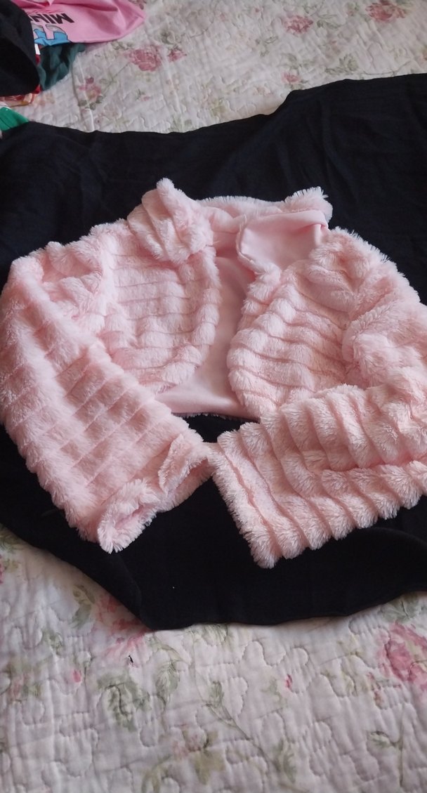 Kız çocuklar için pembe, uzun kollu ve kürk detaylı, yumuşak ve sıcak kumaştan yapılmış fitted bolero. ve sade tasarıma sahiptir.
