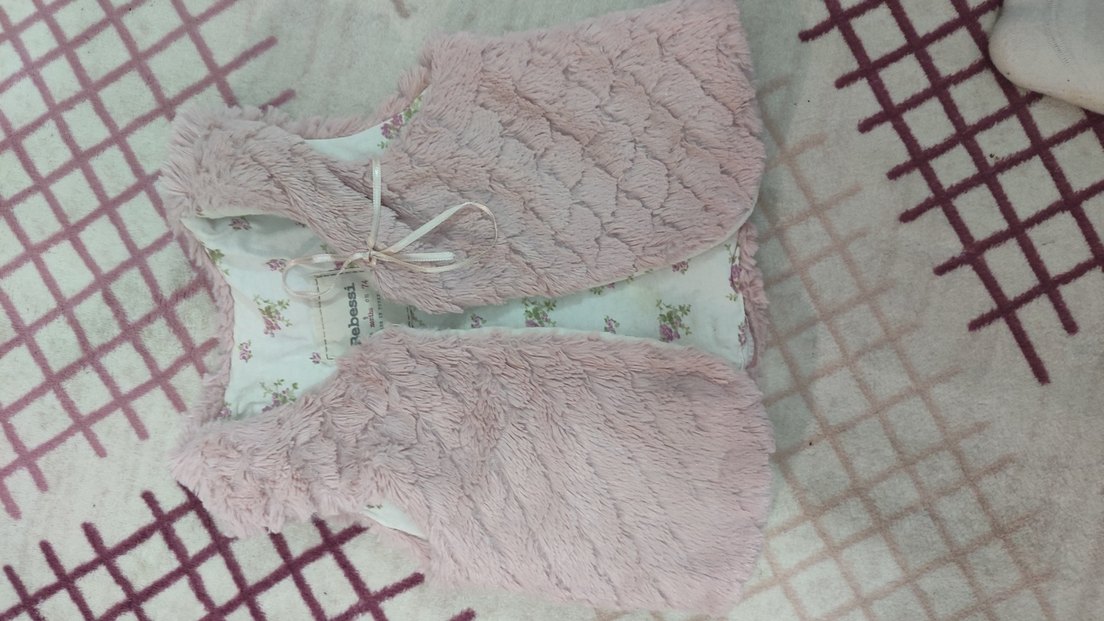 Bu kız çocuk yeleği, pastel pembe renkte, kürklü detaylı ve nakışlıdır. V yaka ve kolsuz olan yelek, bohem tarzını yansıtır. Yumuşak sentetik kumaştan üretilmiştir.