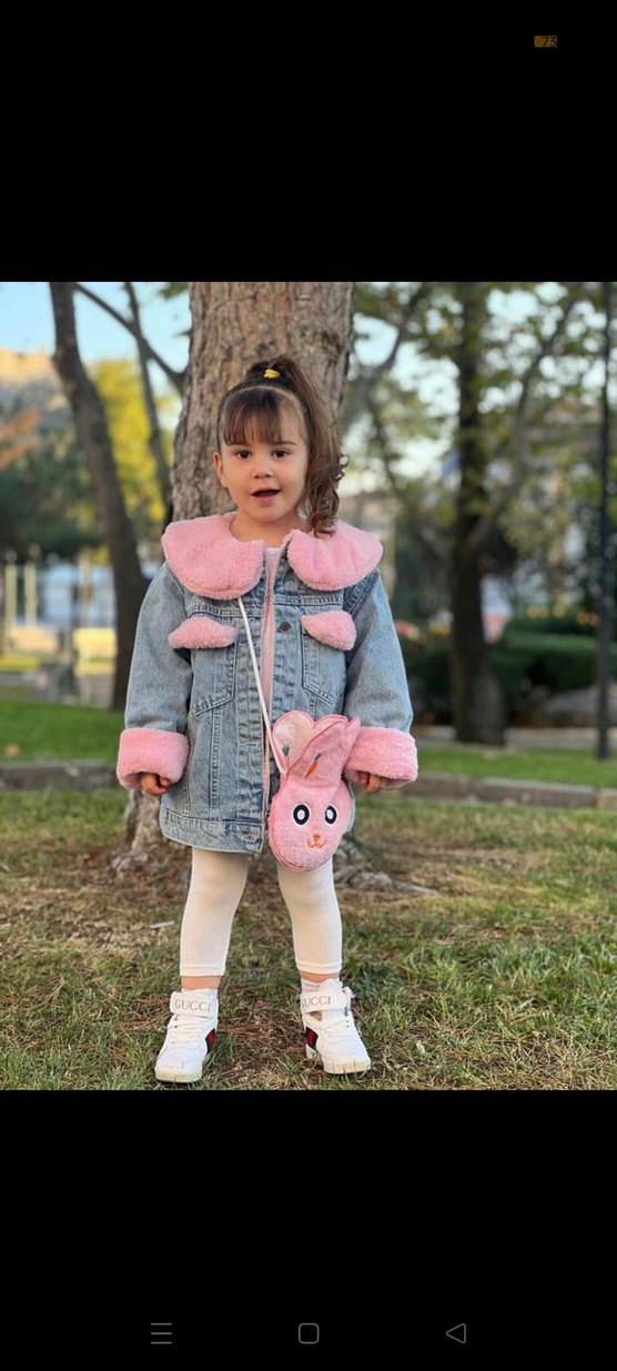 Kız Çocuk Pembe Kürklü Denim Ceket