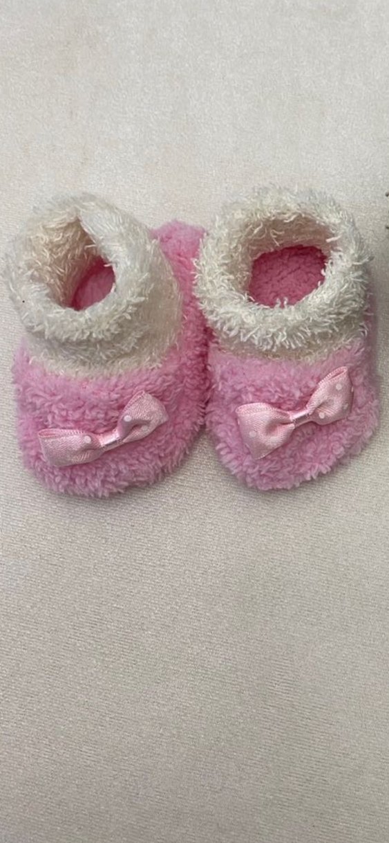 Pembe kız çocuk terlikleri, yumuşak ve sıcak kumaş ile kürk detaylı ve üzerinde küçük fiyonk bulunur, evde rahat kullanım sağlar. 1 defa giyildi