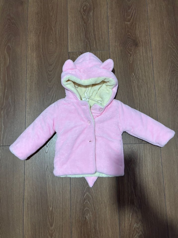 Kız çocukları için pembe, kapüşonlu ve kulak detaylı, yumuşak dokulu kürk iç astarlı, fit kesim ceket. Notched lapel yakaya sahip, sokak tarzına uygun.