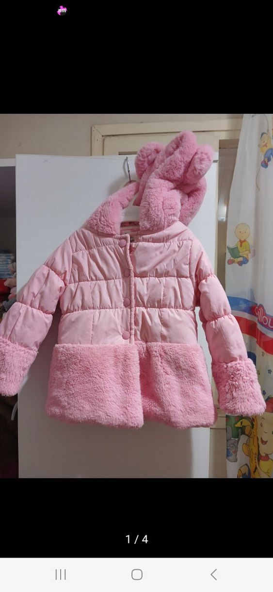 Pembe, kapüşonlu kız çocuk montu, kürk detaylı manşet ve etek ucu ile sıcak ve rahat bir stil sunar.