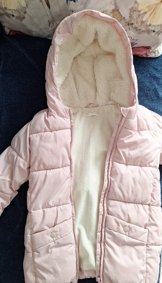 Kız çocukları için fitted pembe mont, kesik yaka ve yumuşak, kürklü kapüşon içi ile dikkat çeker. Düz, pastel tonlarda ve rahat bir fleece iç yüzeye sahiptir.
