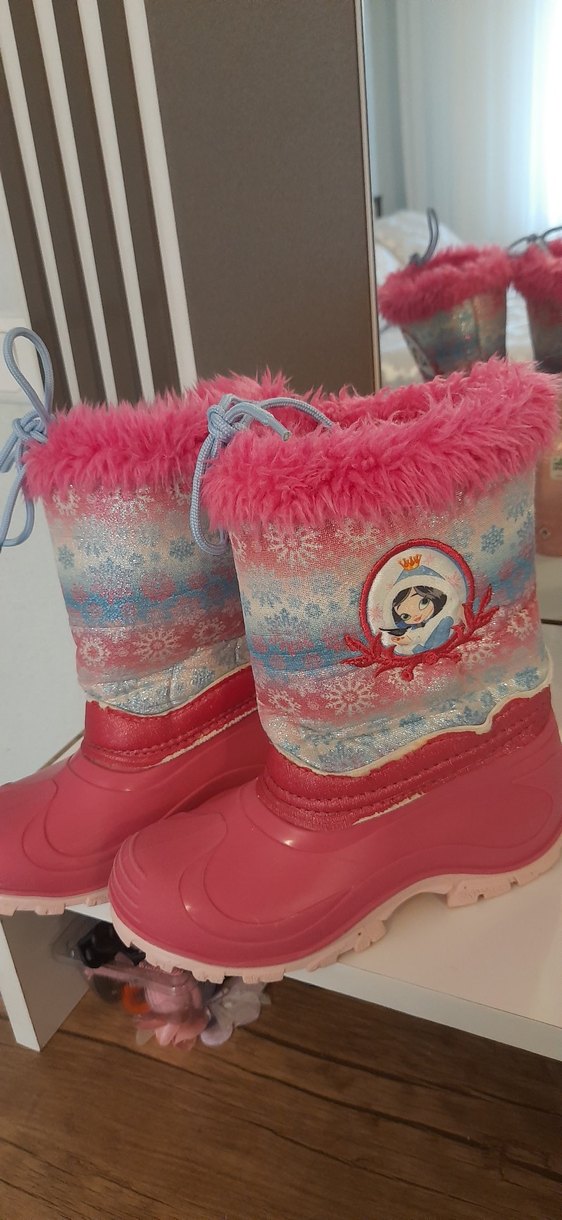 Pembe renkli, renkli desenli ve kürklü detaylı kız çocuk botları, yumuşak ve sıcak keçe malzemeden üretilmiştir. Dayanıklı tabana ve eğlenceli kış temalı tasarıma sahiptir. ❄️