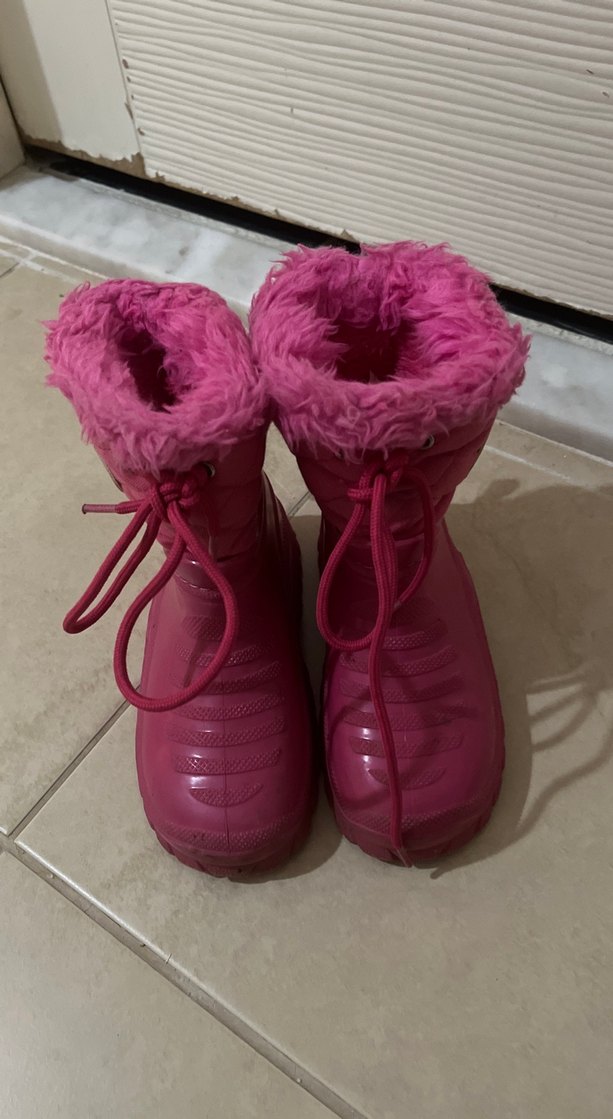 Pembe renkte, yumuşak kürk detaylı ve lastik malzemeden yapılmış kız çocuk botları, sade desensiz tasarımıyla rahatlık ve şıklık sunar.