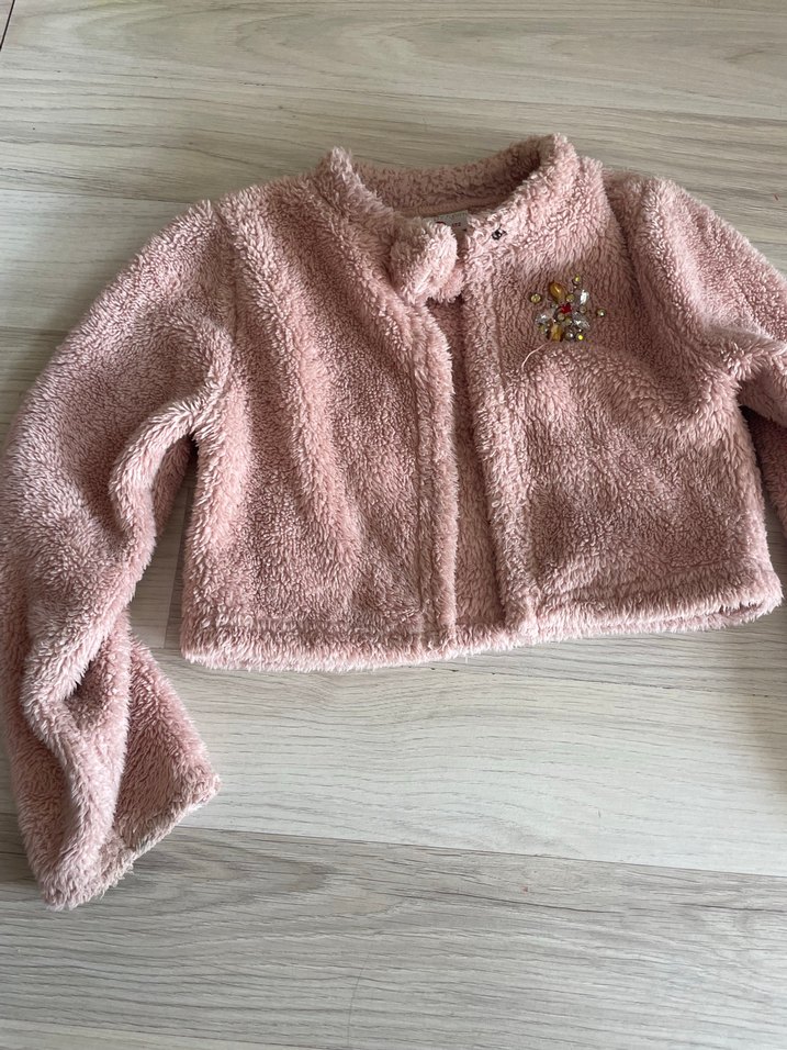 Kız çocukları için pembe, kürk detaylı ve nakışlı, uzun kollu, fitted kesim bolero. Notched lapel yaka ve yumuşak dokusu ile bohem tarzı yansıtıyor.