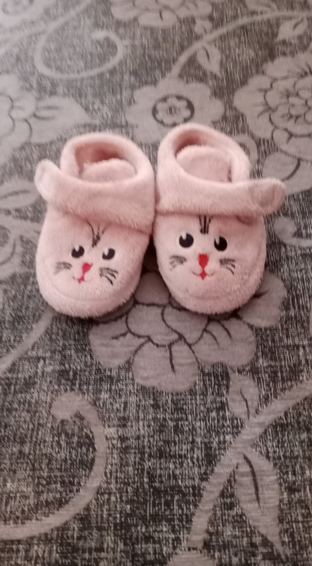 Yumuşak ve sıcak kumaştan, nakışlı hayvan yüzü ve kürklü detaylara sahip pembe kız çocuk ev terliği.