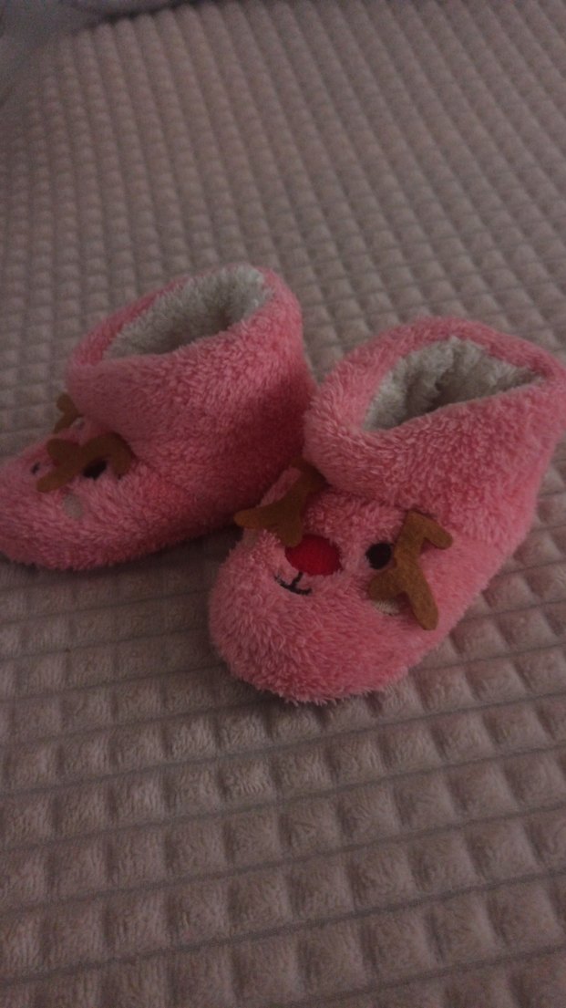 Yumuşak kumaştan yapılmış, kürklü detaylı ve renkli nakışlı pembe kız çocuk ev terliği. İç mekan için sıcak ve rahat.
