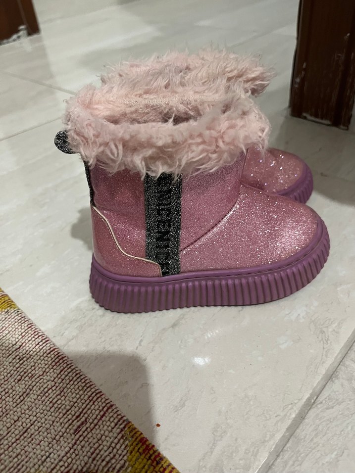 Pembe renkte, yumuşak ve sıcak iç astarlı kız çocuk botu. Kürklü detaylara sahip, pastel tonlarda ve sokak stili tabanlı.