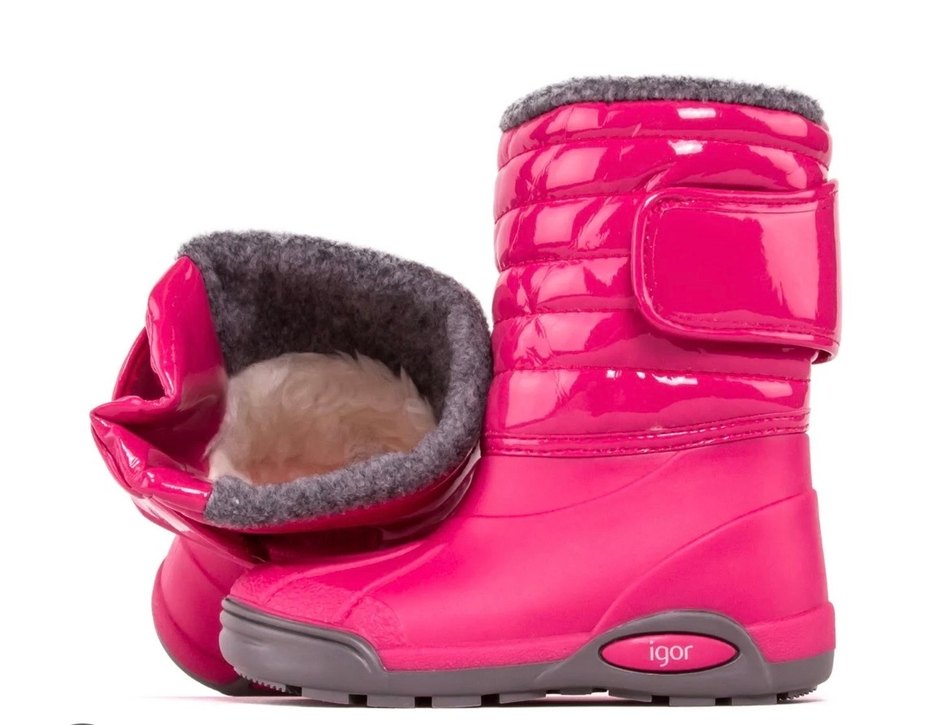 Kız çocukları için pembe renkli, kürklü astarlı kauçuk botlar. Desensiz, modern ve şık tasarıma sahiptir. Tabanında Igor markası bulunur.