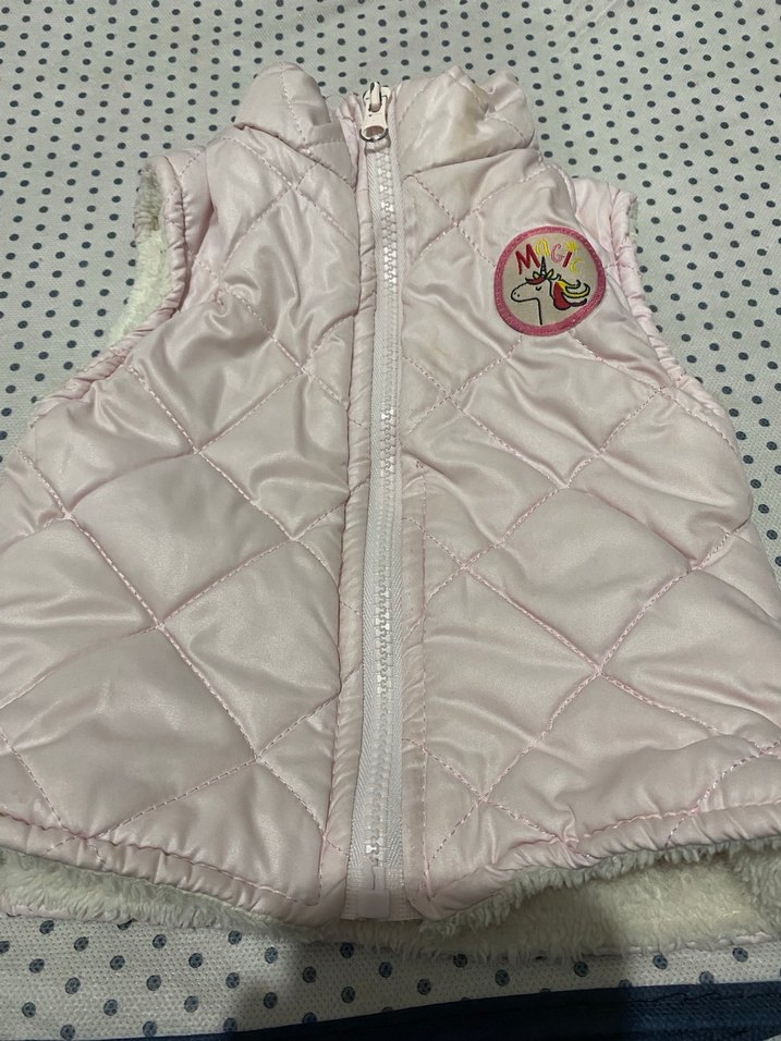Pembe renkli, yakalı ve nakış detaylı kız çocuk yeleği. İç kısmı kürklü, rahat ve sıcak tutan kesimiyle günlük kullanıma uygun.