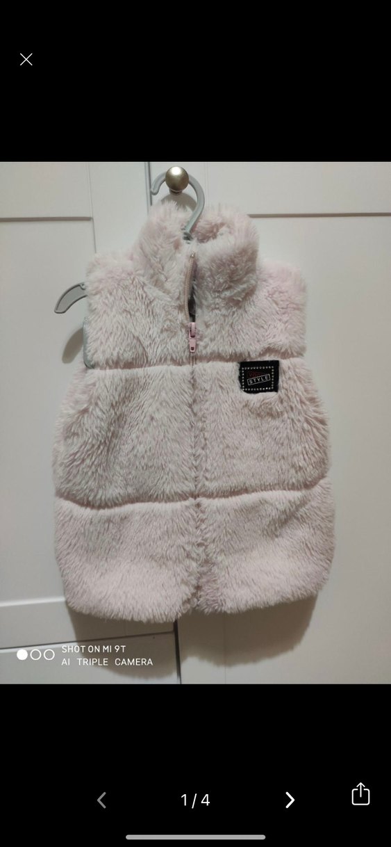 Pembe pastel renkte, kolsuz ve yüksek yakalı kız çocuk yeleği. Yumuşak kürk detaylı, fit kesim ve sokak modasına uygun.
