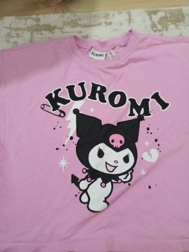 Kız Çocuk Pembe Kuromi Baskılı Tişört crop