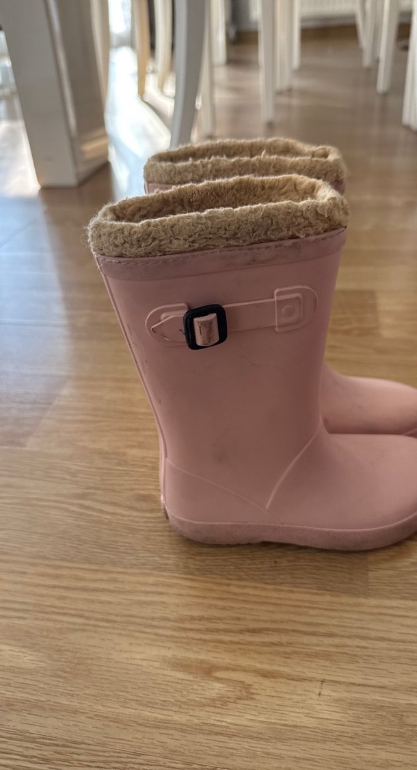Kız çocuklar için tokalı, yumuşak astarlı pastel pembe lastik botlar. Sade ve kullanışlı tasarım.