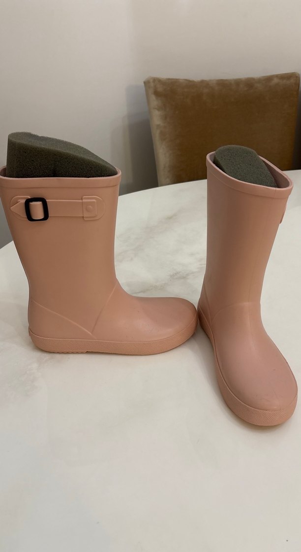 Kız çocukları için tokalı, pastel pembe lastik botlar. Düz ve desensiz, sade normcore tarzda tasarlanmıştır. Igor marka, bir kere giyildi,küçük geldiği için satışta.