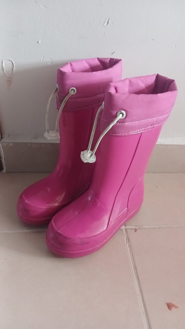 Kız çocukları için pembe lastik çizme, cırt cırtlı kapama ve ayarlanabilir üst kısmıyla rahat kullanım sağlar. Desensiz tasarıma sahiptir.
