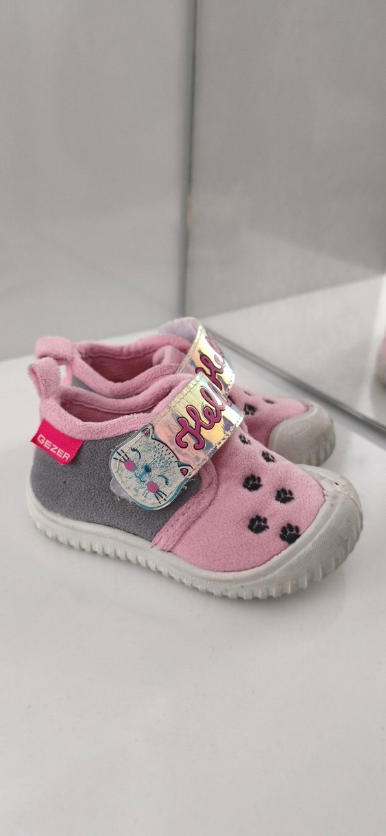 Pembe ve gri yumuşak kumaşlı, leopar desenli kız çocuk terlikleri. Cırt cırtlı bant ve esnek tabanlı, günlük sokak stili için uygun. gezer yıkanması gerekiyor