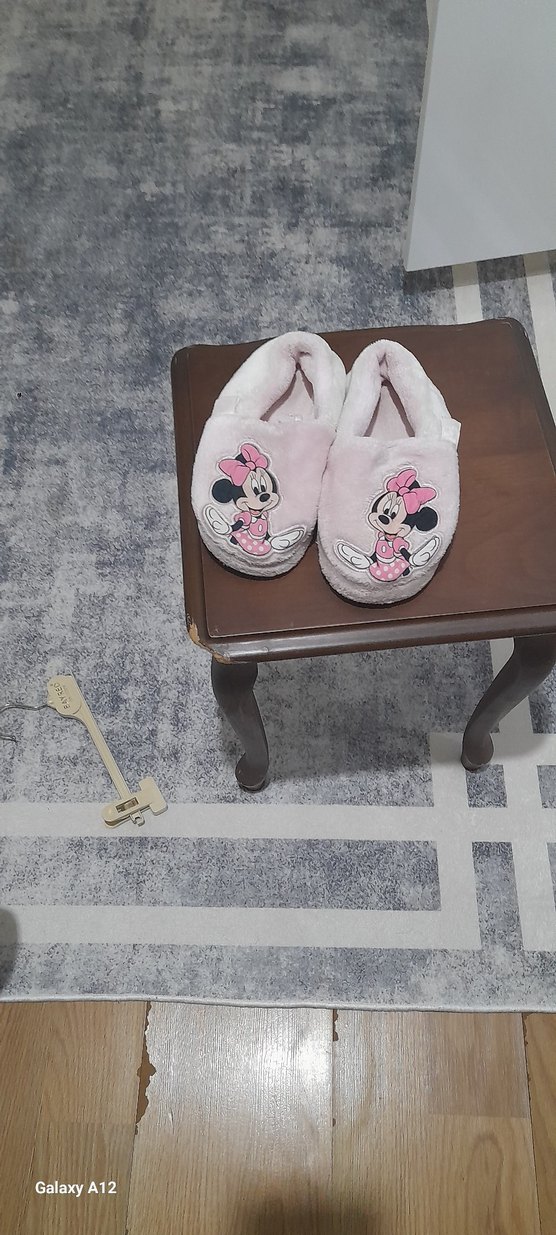 Yumuşak pembe kumaş ve baskılı Minnie figürü ile kız çocukları için sıcak terlik, kürk detaylarıyla konfor sağlar. iyadesi olmaz az kulanldi elsiva marka 26 27 no