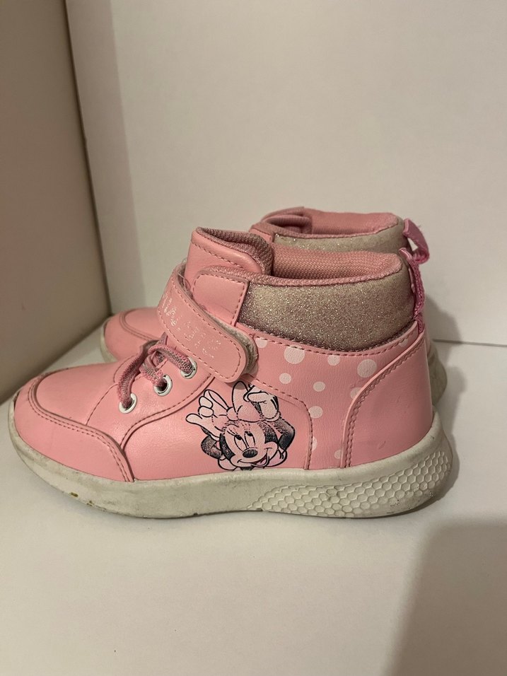 Pembe renkli, Minnie Mouse baskılı kız çocuk spor ayakkabısı, cırt cırtlı ve kauçuk tabanlı, trend sokak stili için uygun.