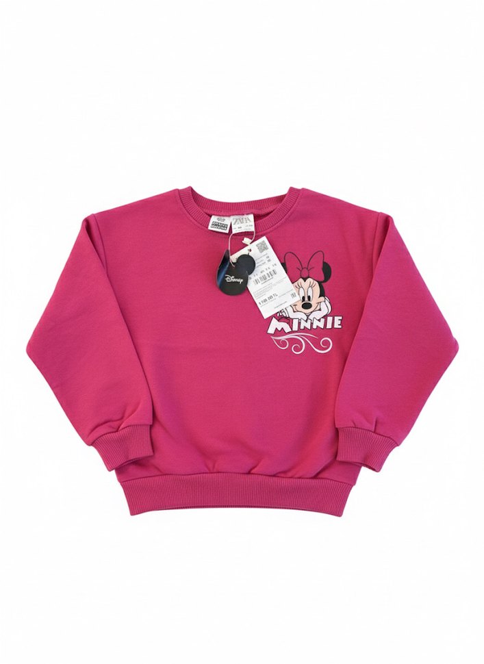 Pembe renkli kız çocuk sweatshirtü, yuvarlak yaka ve uzun kolludur. Yumuşak ve sıcak kumaştan, bol kesimdir. Renkli Minnie baskısı ve örme detaylarıyla trend bir tarz sunar.