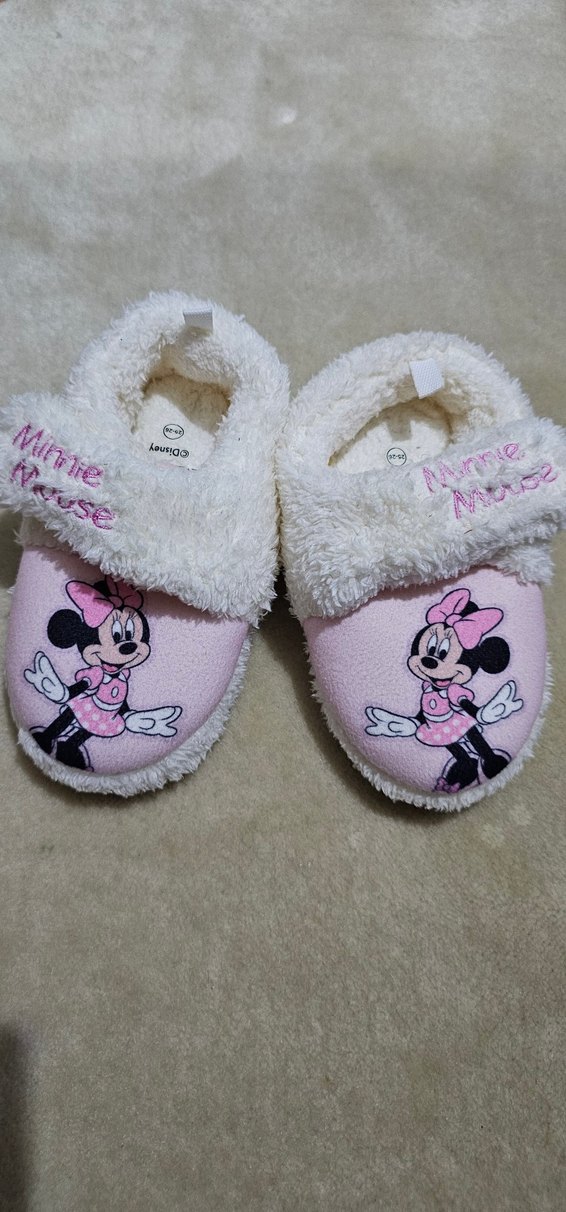 Bu kız çocuk terlikleri yumuşak ve sıcak kumaştan, pastel pembe renkte ve Minnie Mouse baskılıdır. Kolay giyilmesi için cırt cırtlı bant ve rahat bir tasarıma sahiptir. Hiç kullanılmadı, kızım minnie mouse sevmiyormuş.