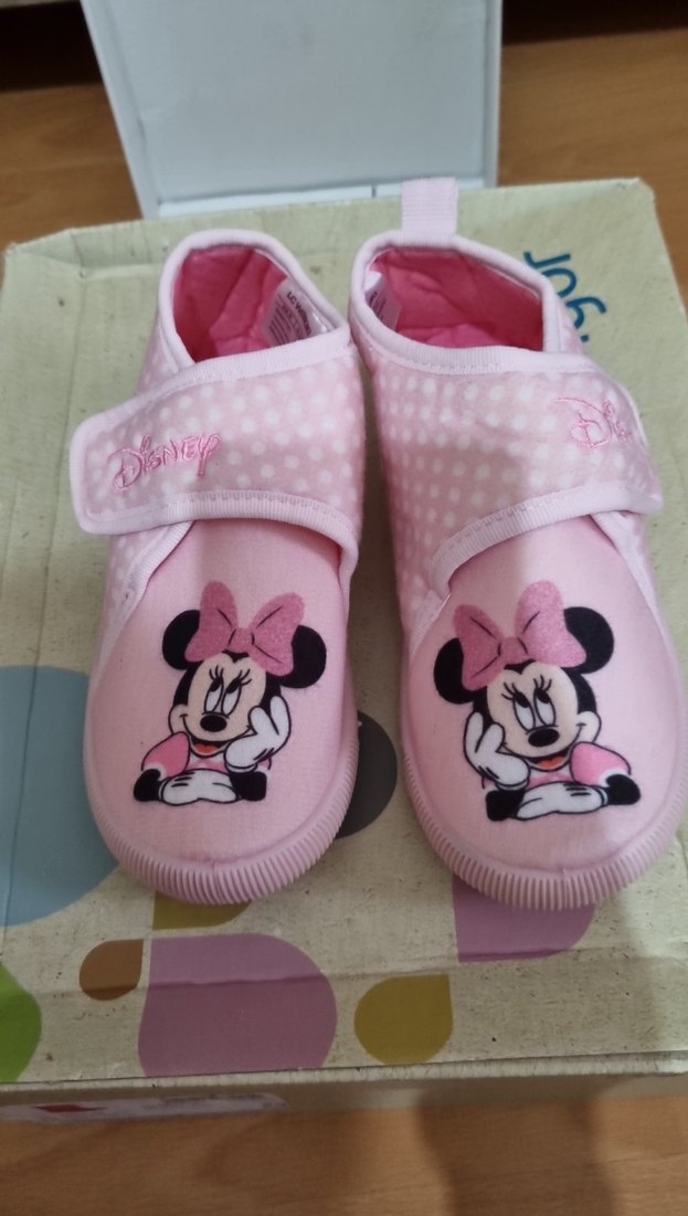 Kız çocuklar için Minnie Mouse baskılı, cırt cırtlı pembe sıcak terlik. Yumuşak ve rahat malzemeden, hiç kullanılmadı.