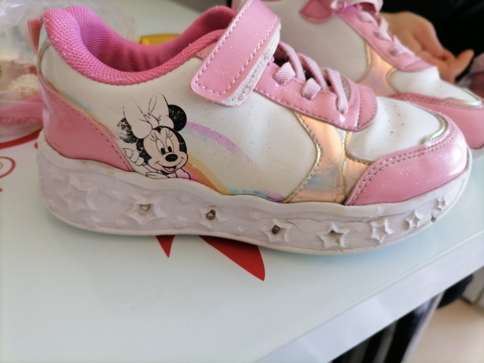 Renkli pembe kız çocuk spor ayakkabısı, Minnie Mouse baskılı, kauçuk tabanlı ve kolay giyilen cırt cırtlıdır. Rahat sokak tarzı için uygundur.