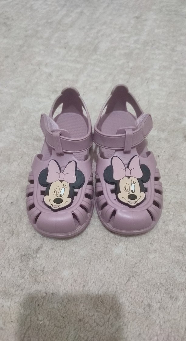 Hiç kullanılmadı. Lc Waikiki marka. 25 numara.Pastel pembe renkte, tokalı ve baskılı Minnie Mouse desenli kız çocukları için kauçuk sandaletler, trend sokak stili için uygun.