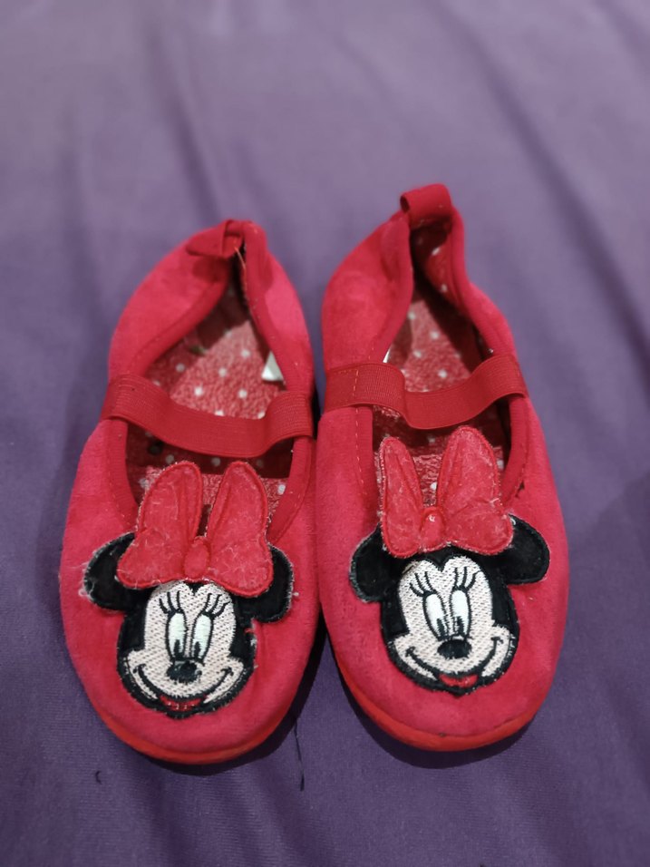 Nakışlı Minnie figürlü, cırt cırtlı, kauçuk tabanlı kız çocuk pembe ev terliği.